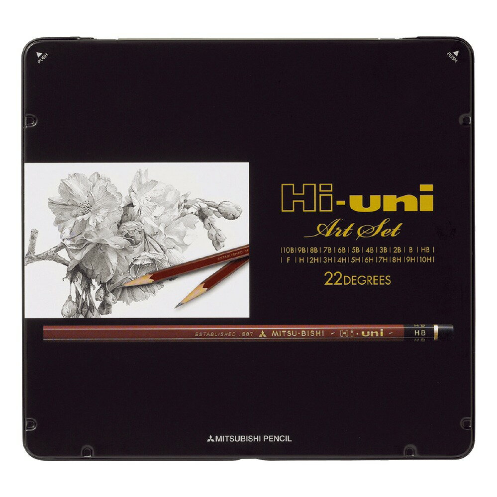 【11月20日24H限定★エントリーで全商品P10倍!】三菱鉛筆 MITSUBISHI ハイユニ鉛筆 Hi-uni ハイユニアートセット 10H から 10B まで 22硬度 セット 六角 6角 アート 画材 デザイン デッサン イラスト 文具 文房具 ステーショナリー HUAS