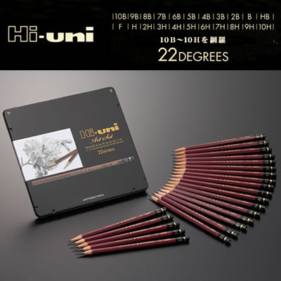 メーカー名:三菱鉛筆 商品名:ハイユニ アートセット 硬度:HUAS 商品説明:「ユニ」鉛筆シリーズの中で、最上位グレードである「ハイユニ」の全22硬度をセット商品にしました。【三菱鉛筆】ハイユニ アートセット メール便発送可能!! 10H〜10Bまでの全22硬度を揃えた鉛筆セット 「ユニ」鉛筆シリーズの中で、最上位グレードである「ハイユニ」の全22硬度をセット商品にしました。 1