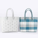 ・カラー展開: ホワイト、ブルー・スタイル: アーバンカジュアル・主な素材: PVC・カテゴリ: 編み込みバッグ・サイズ: L・デザイン: 編み込み・バッグの形状: 横長スクエア型・開閉方法: オープン開閉・硬さ: ミディアム・おすすめシーン: デイリーユース
