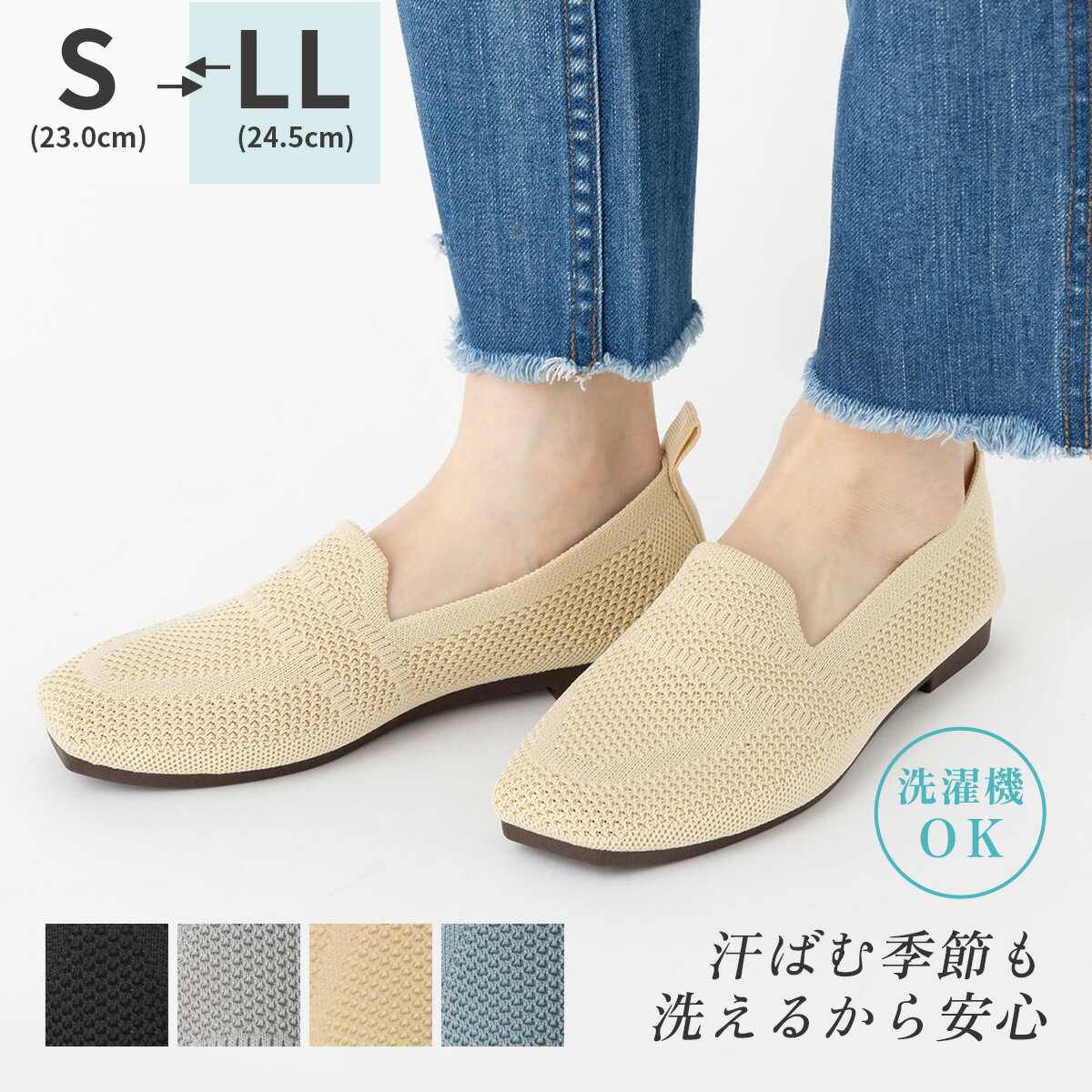 ニットパンプス レディース 洗える 軽量 幅広 甲高 洗えるニットパンプス パンプス ニットシューズ ローヒール スクエアトゥ 歩きやすい 履きやすい 疲れない 痛くない 滑らない 通勤 通学 旅行 BOUQET ハスキー husky Co.Ltd.