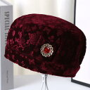 帽子 レディース 高齢者 祖母向け 秋冬 裏起毛 厚手 防寒 保温 ネック保護 防風 金ベルベット ラインストーン飾り 高級感 エレガント 丸型 つばなし ハット