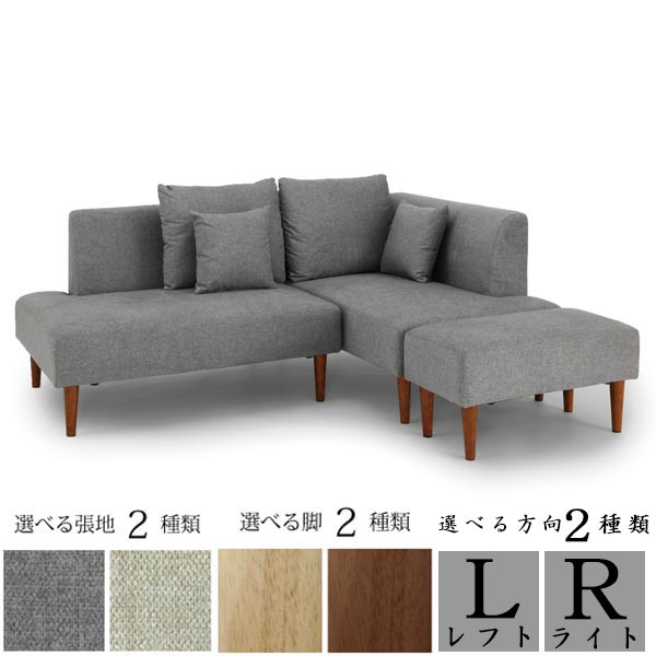 【本日クーポン10%引】 カウチソファ 幅195cm 奥行169cm 高さ75cm カウチ ローソファー コーナーソファ L字ソファ ソファー ソファ ファブリック 選べる張地 選べる脚 ワンルームグレー ライトグレー おしゃれ シンプル GOK QOG-100 小さめ コンパクト 左右選択 家具