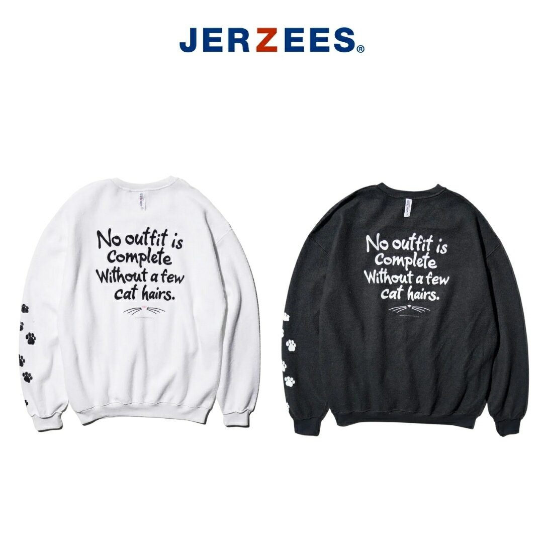 【JERZEES / ジャージーズ】 "CAT HAIRS" OTHER-SIDE CREW SWEAT キャット 猫 スウェット 長袖 メンズ レディース オーバーサイズ 8オンスボディ起毛 白 ホワイト 黒 ブラック
