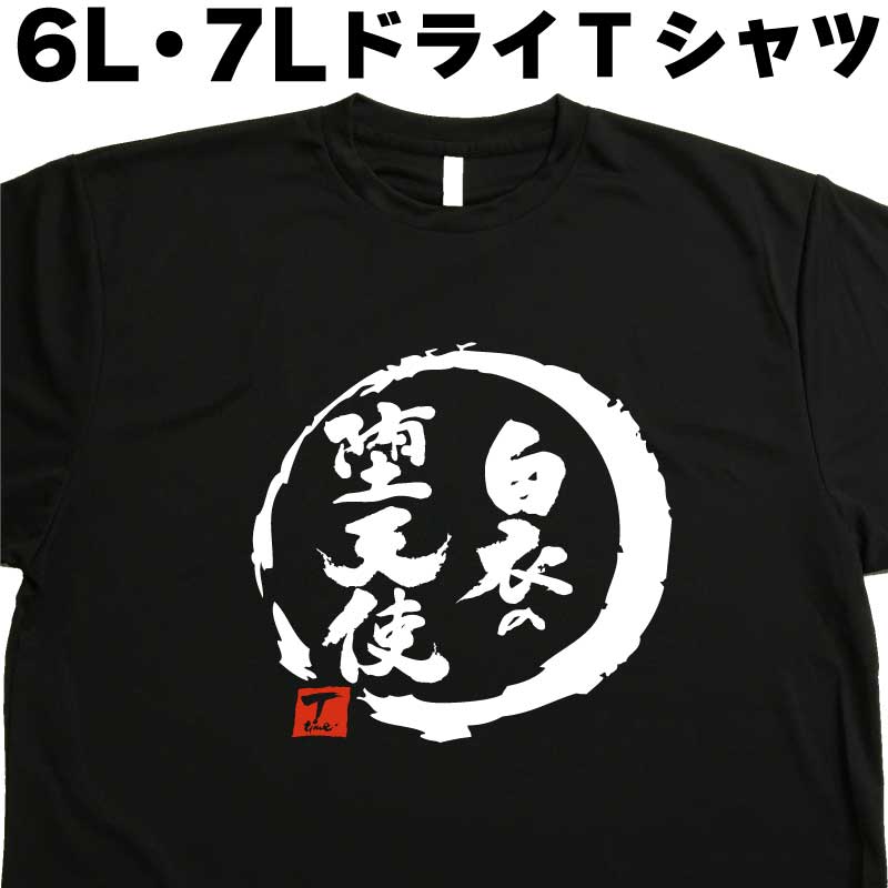 白衣の堕天使 (デザイン書道) 6L 7L Tシャツ 大きい服 大きいtシャツ 大きいサイズ メンズ レディース 半袖 グリマー glimmer ドライTシャツ 吸汗 速乾 おもしろTシャツ 面白いTシャツ オリジナルTシャツ ビッグサイズ ビッグTシャツ 黒 ポリエステル