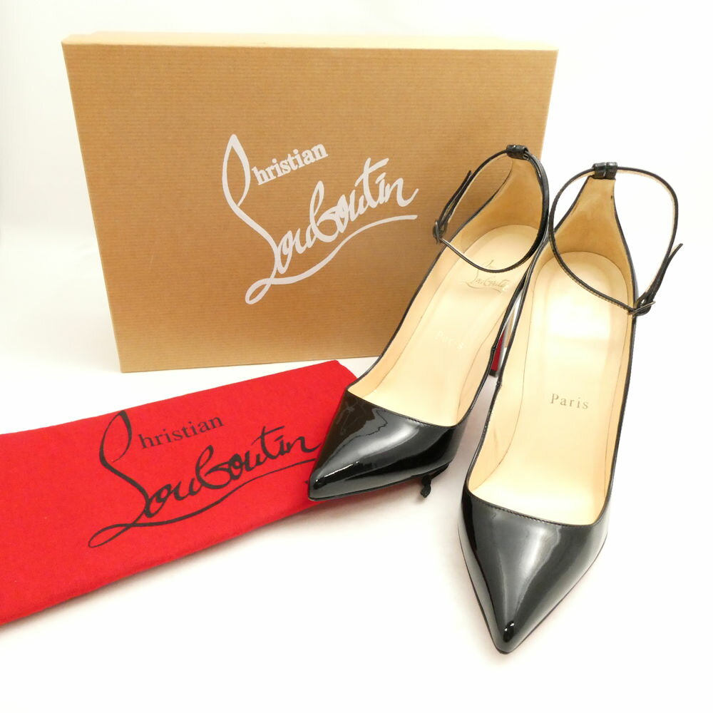 美品 Christian Louboutin ルブタン HALTE 100 ポインテッドトゥパンプス 36.5 PATENT CALF パテント ハイヒール アンクルストラップ レディース AY6894 【中古】