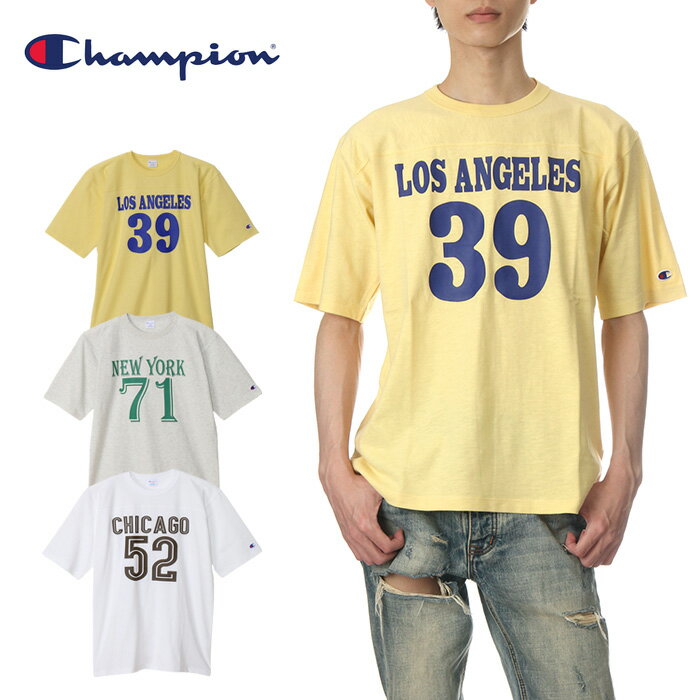 チャンピオン Tシャツ メンズ レディース CHAMPION 半袖Tシャツ ショートスリーブ フットボールTシャツ 大きいサイズ アメリカ綿 吸湿 冷感 おしゃれ カジュアル スポーツ ブランド ニューヨーク ロサンゼルス シカゴ NY LA M L XL 白 グレー イエロー C3-Z336
