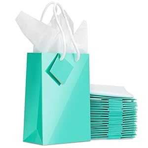 BLUE PANDA 20 Pack Small Teal Gift Bags with Handles, Tag, and Tissue Paper Sheets for Baby Shower, Valentines, Birthday, Wedding, Anniversary Party Favors and Goodies, 7.9x5.5x2.5 in