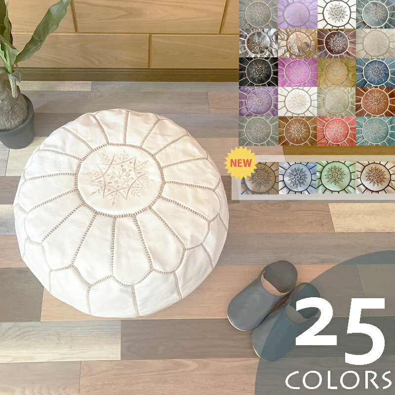 オットマン プフ モロッコ Lサイズ 天然革 レザー 本革 収納 ソファ クッション 足置き台 スツール フロアクッション 北欧 雑貨 ハンドメイド アンティーク エスニック チェア インテリア 丸形 オーガニック スツール カバー おしゃれ かわいい 可愛い シンプル 新築祝い