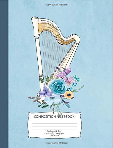 Composition Notebook: Pretty Floral Orchestra Harp Notebook for Harpists, College Ruled Lined Paper - 7.44 x 9.69 Inches, 200 p
