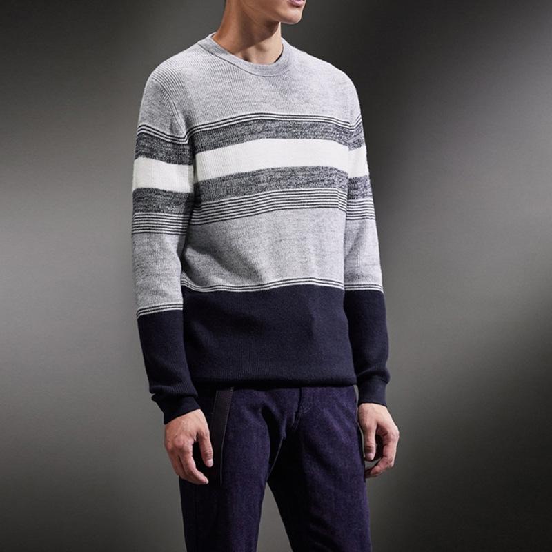 ニット メンズ 男性用 配色 ストライプ クルーネック 長袖 セーター トップス カジュアル プルオーバー 秋冬