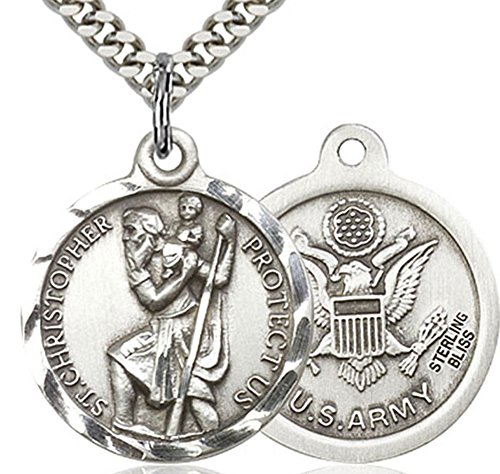 【中古】【未使用・未開封品】Heartlandメンズラウンドスターリングシルバー聖クリストファー・陸軍メダル USA Made