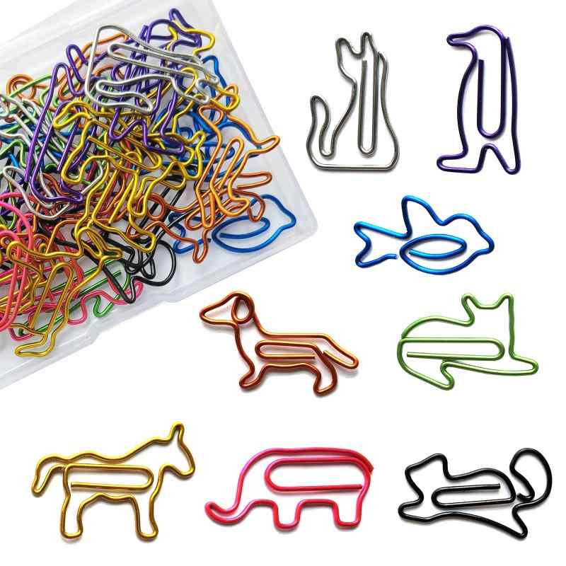 5WYOUKE ゼムクリップ 【40枚セット】ペーパークリップ 動物 クリップ 可愛い ネコ 犬 ペンギン ブックマーク 金属製 書類整理/招待状/付箋/手紙/メモ帳用 文房具 カラー 豊富 メモクリップ 8種