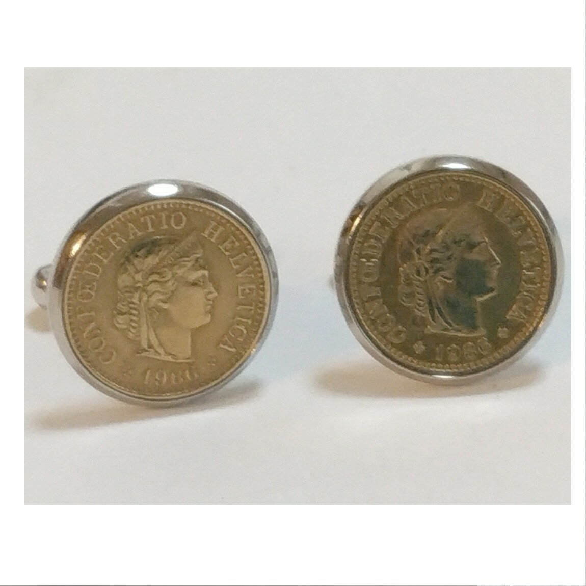 【中古】本物美品CONFOEDERATIO HELVETICAの1986刻印の金色コイン2個を使用したカフスボタン 重さ2個で12g 〇D18-3-1と2 X2