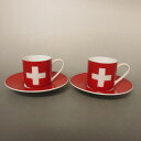 ★スイス/ Confoederatio Helvetica/ヘルべチア連合 国旗 デミタスカップ&ソーサー 2客セット 新入荷 【中古】