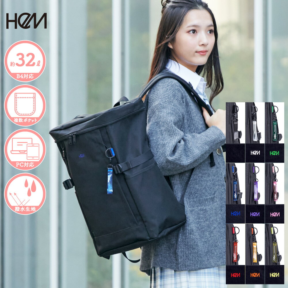 【最大42倍 27日2時迄】 ノベルティ付 ヘム リュック レディース メンズ 通勤 大容量 大きめ HeM 軽量 おしゃれ 旅行 カジュアル 女子 男子 中学生 ボックス型 スクエア 32L B4 A4 撥水 PC リュックサック 学生 高校生 フェイヴ 39-71800