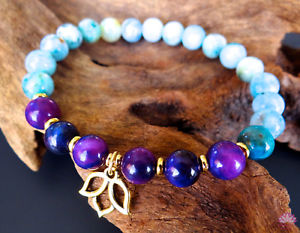 【送料無料】ブレスレット アクセサリ— ロータスビーズブレスレットgenuine hemimorphite and sugilite bead bracelet with gold plated lotus