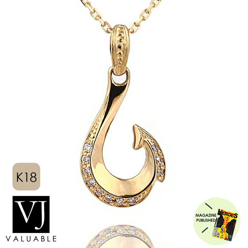 【 ファッション誌 掲載 】 ダイヤモンド 18金 ネックレス メンズ 18k イエローゴールド 「 Herbie ベイビー ヘブン フック ペンダント 」 キヘイ チェーン 【 B セット 】※長さ 40cm 45cm 50cm 選択[ K18 ハワイアン ジュエリー フィッシュ 釣り針 アンカー ]