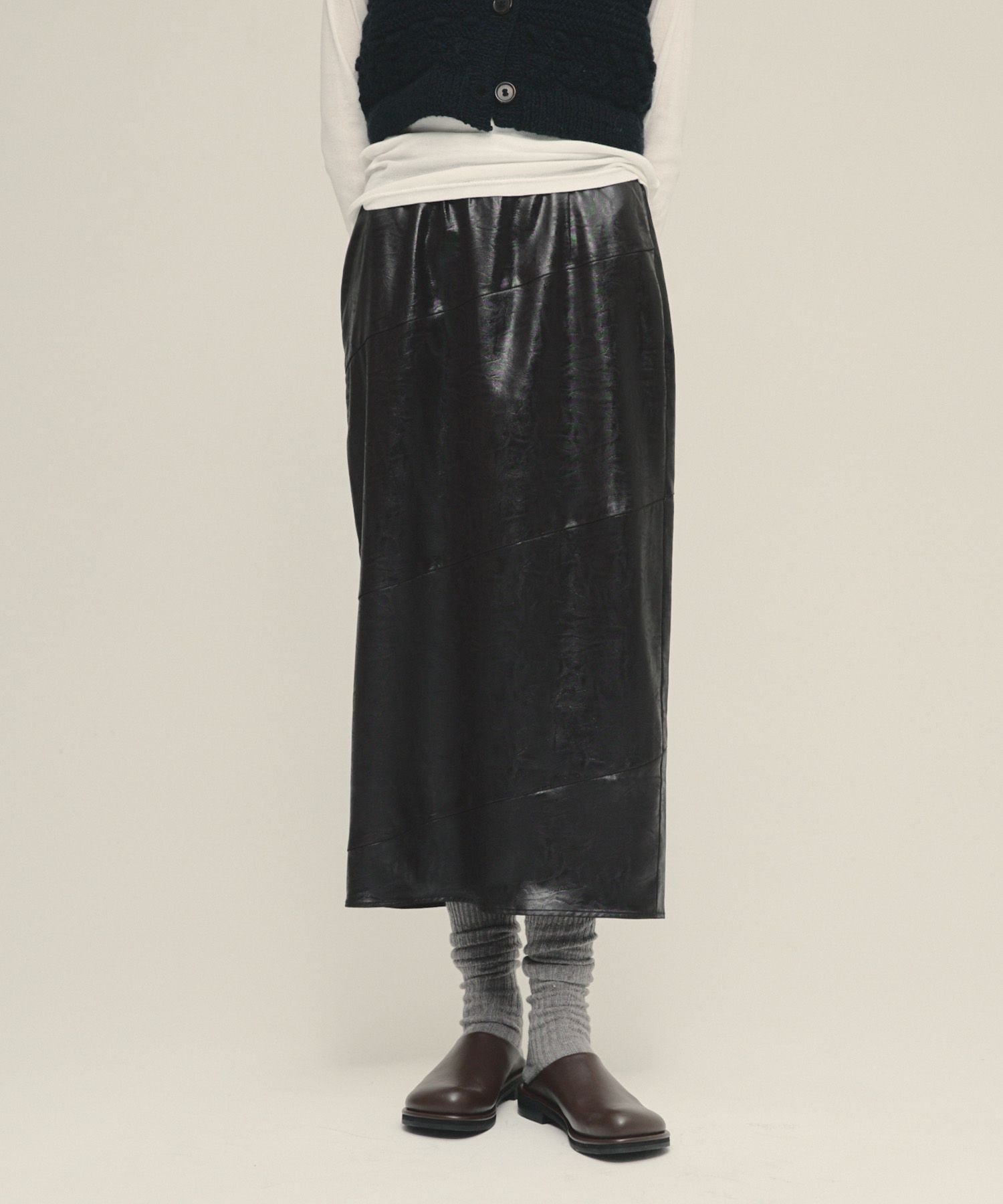 【SALE/58%OFF】eL Faux Leather Skirt ジーナシス スカート ロング・マキシスカート ブラック ブラウン【送料無料】
