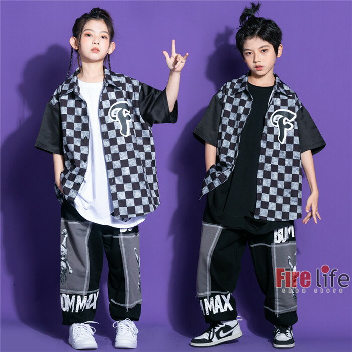 キッズダンス衣装 ヒップホップ シャツ パンツ 袖なしTシャツ 格子 チェック柄 hiphip 舞台 演出 k-pop イベント