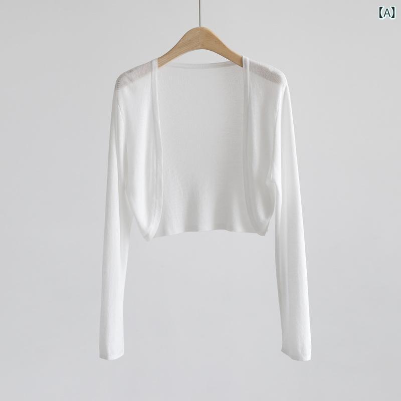 カーディガン 長袖 ボタンレス ショール 極 薄 ニット 日焼け防止 シャツ スリム アウター レディース エアコン シャツ Vネック ショート