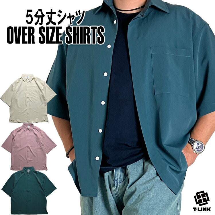 [在庫処分]五分丈シャツ メンズ レディース ビッグシルエット ドロップショルダー ゆったり 胸ポケット 半袖 カジュアルシャツ カーディガン風シャツ 3カラー ストリート ユニセックス ボタンダウン カップル 大きいサイズ シェア ペア お揃い B系 Hip Hop ダンス
