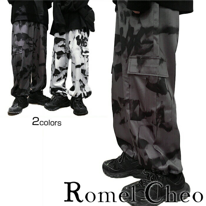 RomelCheo モノトーン マーブル カーゴパンツ 裾絞り 2way ワイドパンツ メンズ レディース ユニセックス ワークパンツ 白黒 タイパンツ モノクロ ゆったり ジョガーパンツ Y2K ファッション ポケット ダンス ヒップホップ hiphop ロメルチェオ
