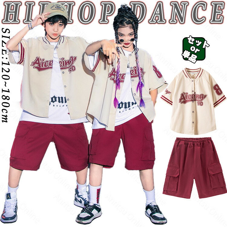 赤 ベースボールシャツ 夏 半袖 キッズ ダンス衣装 セットアップ 男の子 女の子 かっこいい おしゃれ ゆったり カジュアルシャツ トップス レッド カーゴ短パン ジャズダンス ヒップホップ 韓国k-pop 演出服 団体服 応援団 練習着 原宿系 発表会 運動会 ステージ着 子供服