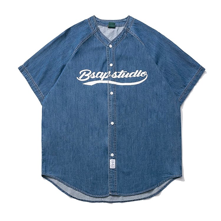 デニム シャツ メンズ ファッション ベースボールシャツ 野球服 ダンス 衣装 トップス 5分袖 ヒップホップ 衣装 メンズ カジュアルシャツ かっこいい