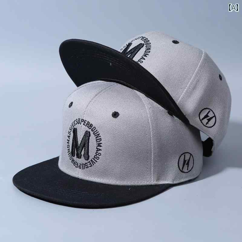 ベースボールキャップ 平つば M ラウンド ロゴ 刺繍 野球帽 男女兼用 ファッション カジュアル ヒップホップ 日除け 帽子 アウトドア スポーツ ゴルフ キャップ