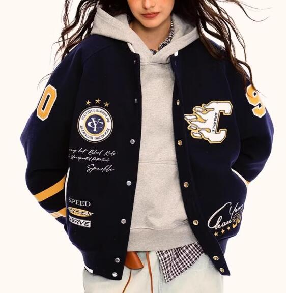 2色 ベースボールジャケット スタジャン スカジャン アウター ジャケット ブルゾン ジャンパー ロゴ ワッペン 刺繍 ヒップホップ HIPHOP 韓国 おしゃれ 大きいサイズ ビッグ ゆったり ストリート スケーター レディース メンズ 奇抜 派手