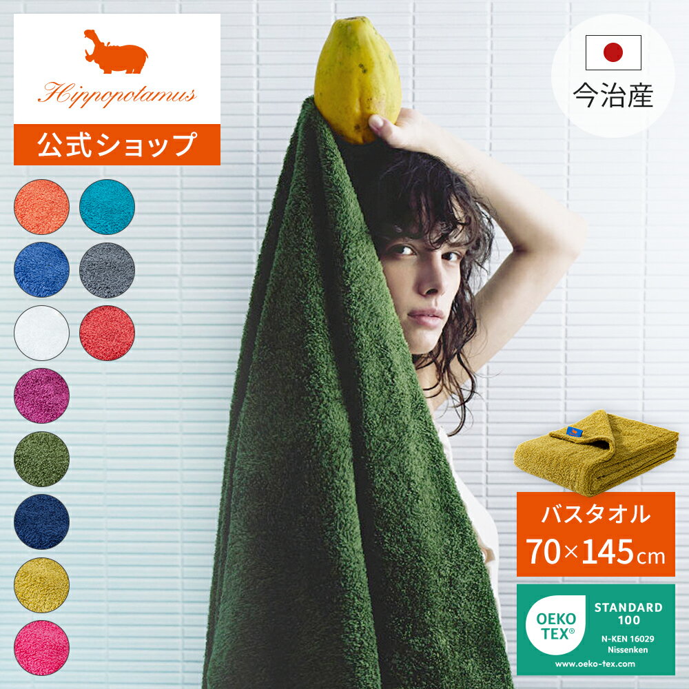 【公式】オーガニックコットン&バンブー レギュラーバスタオル|70×145cm Hippopotamus|ヒポポタマス ギフト 今治 高級 11色から選べる 1枚 竹レーヨン かわいい 大判 今治産 高級タオル プレゼント 結婚 出産 内祝い おしゃれ 贈り物 国産 日本製
