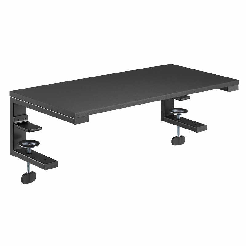 3パターンの設置方法に対応する多用途なモニター/パソコンライザー。■デスク周りをすっきり、スペースを有効活用デスクに設置するだけで、机上を整理できるモニター・パソコン台。モニターの下にキーボード・マウスを収納すれば、空いたスペースを広々有効活用。耐荷重は最大18kgあるので、モニターだけでなく、パソコン台、プリンター台としても使用可能です。デスクでの作業や、掃除も簡単に行えます。■選べる3パターンの設置方法ご使用環境に合わせて、トップクランプ式、サイドクランプ式、自立式の3パターンの設置に対応。最適な設置方法でご使用ください。【トップクランプ式】モニターの設置に最適な設置方式です。【サイドクランプ式】550×250mmの天板を拡張デスクとして使用することができます。【自立式】クランプが設置できないデスクに最適な設置方式です。■モニターを上げて快適な姿勢にモニターの位置を上げることで自然と視線も上がり、快適な姿勢で作業を行うことができます。トップクランプ式の場合は約8cm、自立式の場合は約16cmデスクからモニターの高さを上げることが可能です。