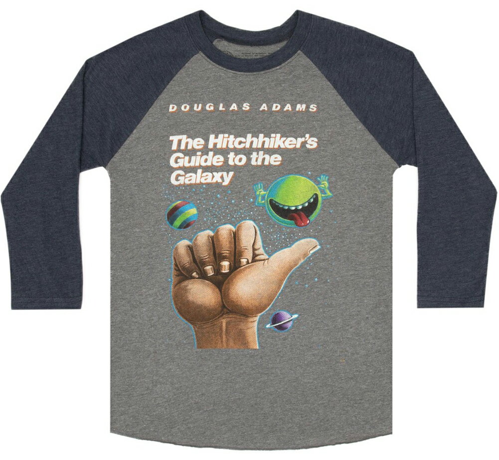 [Out of Print] Douglas Adams / The Hitchhiker's Guide to the Galaxy Raglan Tee (Heather Grey/Navy Blue) - 銀河ヒッチハイク・ガイド ラグラン Tシャツ
