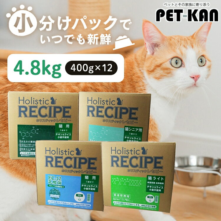 【最大400円クーポン!ワンにゃんデイ】ホリスティックレセピー キャット 4.8kg キャットフード 猫 ドライフード アダルト 成猫 シニア 高齢猫 老猫 ライト 体重管理 ダイエット 毛玉ケア カリカリ 総合栄養食 小分けパック 400g×12 パーパス Holistic RECIPE