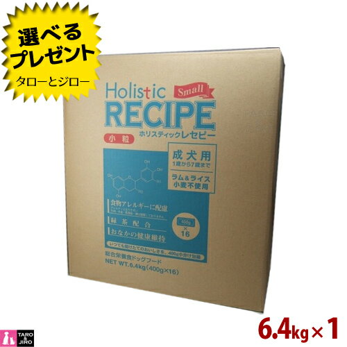 【選べるおまけ付】ホリスティックレセピー【ラム&ライス 小粒】成犬用 6.4kg (400g×16袋の小分け) 食物アレルギー配慮 ドライフード ドッグフード