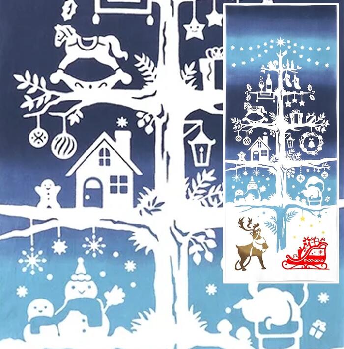 【 注染 手ぬぐい 】クリスマス タペストリー Holy night 気音間 kenema [ クリスマス そり トナカイ プレゼント タペストリー 和風 インテリア 飾り ディスプレイ ディスプレー 四季 季節 冬 12月 日本製]