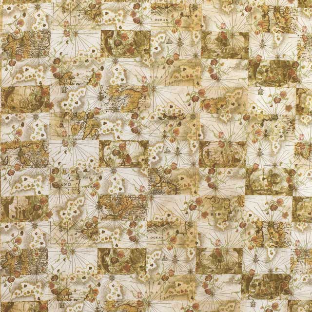 〔メール便対応商品〕 生地 LIBERTY FABRICS リバティ・ファブリックス タナローン 2025SS Botanical Escape Honeymoon Map ハネムーン・マップ(25-363J7413) 25BU.ブラウン 09Ac03j