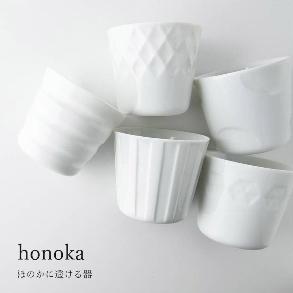 honoka-小田陶器- ほのかに透ける器は、料理のおいしさを引き立て、 毎日使いたくなる魅力をもっています。 その魅力を活かし、守り、育みながら、 現代の暮らしにあう、新たな「日本の白いうつわ」として 誕生した このhonokaです。 品質とこだわりを大切に、創業大正10年から 白いうつわを作り続けた小田陶器の歴史があります。 光にかざすと、とても美しく綺麗です。 キャンドルホルダーとしてもお使い頂けます。 ・素材:磁器 ・サイズ:直径8.5cm H7.8cm ・容量:240cc ・重量:155g ・産地:日本(岐阜県瑞浪市) ・食器洗い機:OK ・オーブン:不可 ・電子レンジ:OK シリーズラインナップはこちら 別売となりますが専用のギフトボックスもございます 2個入り 3個入り 5-6個入り ↓↓↓