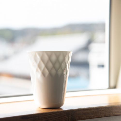 器の薄いところと厚いところを作ることで、光にあてると模様がほのかに浮かび上がります。磁器の光を透す特性を生かしたカップ。口径8cm、高さ9.8cm。満水容量:280ml 電子レンジOK、食器洗浄機OK。材質/磁器。日本製。ほのかカップ 磁器の「透光性」という特性をいかしたすかし模様の入ったカップ。 生地の厚みを変え、いろいろな柄を作りました。ドリンクの色がほのかに映ります。 ニューヨーク近代美術館のミュージアムショップで販売が決定した、全世界で認められたデザイン! サークル、ボーダー、ストライプ、ダイヤの4柄に、新しくスノーが加わりました。 3サイズずつあります