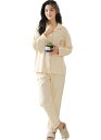 [House Yayoi] パジャマ レディース 長袖 前開き ストレッチ ロングパンツ ルームウェア 可愛い 入院 部屋着 大きいサイズ ゆったり 女性用 寝巻き 便利 リラックス 秋 冬 春 プレゼント 綿 コッ