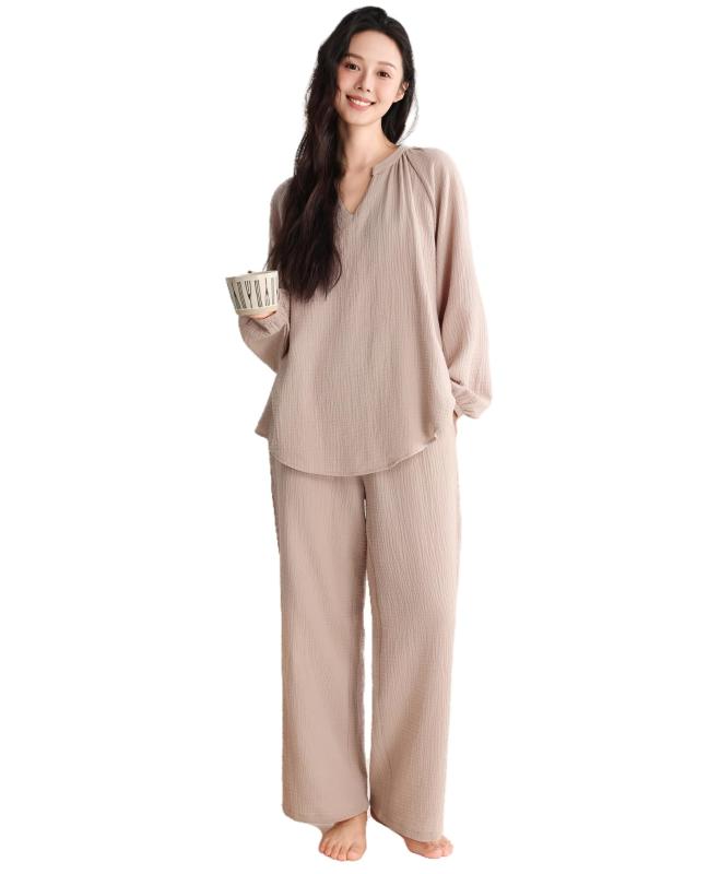 [House Yayoi] パジャマ レディース 2重ガーゼ 綿 長袖 長め ガーゼ ルームウェア 春 夏 かわいい ゆったり ナイトウェア 上下セット 部屋着 寝巻 体型カバー 無地 大きいサイズ 入院 マタニテ
