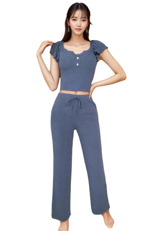 [House Yayoi] パジャマ ルームウエア 上下セット 女性 レディース 夏用 薄手 薄め 半袖 長ズボン ハイウエスト 春 夏 かわいい 大人可愛い ナイトウェア 肌に優しい 部屋着 寝巻 丸首 冷感 セク