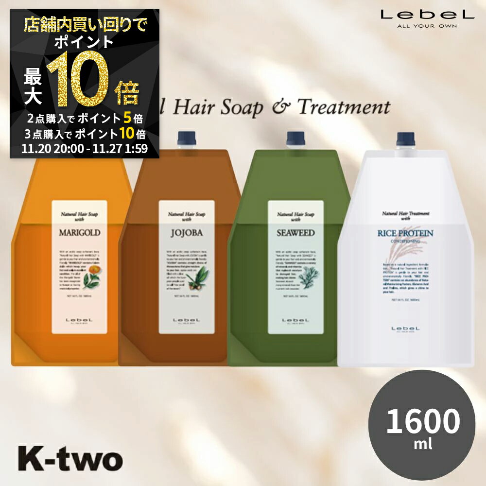 【20日20時〜全品2点購入5倍★3点購入10倍】\クーポン利用で2本購入982円off★4本購入2,376円off/ルベル 【 ナチュラルヘアソープ 詰替 選べる1600ml】 ウィズ シャンプー トリートメント マリーゴールド シーウィード ホホバ ライスプロテイン レフィル LebeL K-two