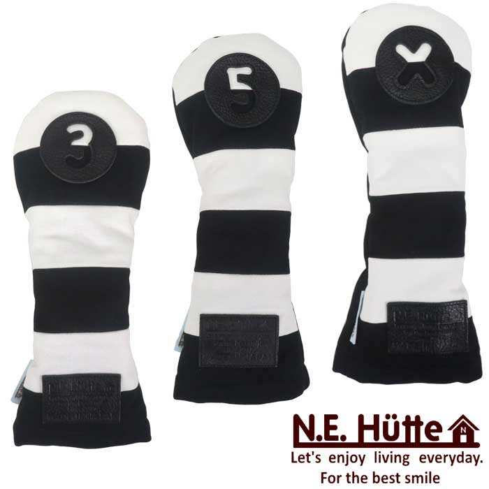 エヌ.イー.ヒュッテ N.E.Hutte 帆布キャンバスシリーズ フェアウェイウッド用 ヘッドカバー ボーダー ブラック/ホワイト FW用