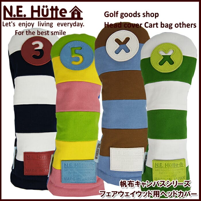 エヌ.イー.ヒュッテ N.E.Hutte 帆布キャンバスシリーズ フェアウェイウッド用 ヘッドカバー ボーダー FW用