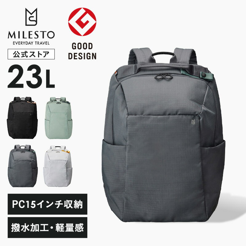MILESTO Hutte ミレスト リュック バッグ バックパック フュッテ メンズ レディース 23L ポーチ付き 撥水 ブラック ライトグレー ダークグレー グリーン 黒 MLS943