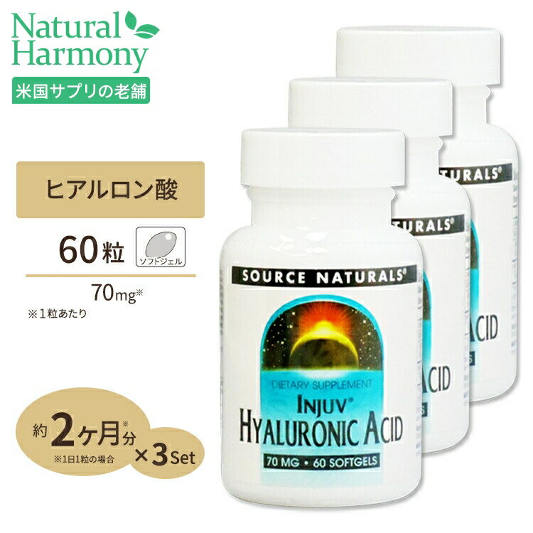 【店内8千円以上1000円OFFクーポン】[3個セット] ソースナチュラルズ ヒアルロン酸 インジュヴ 低分子 60粒 Source Naturals Injuv Hyaluronic Acid 70mg 60Softgels美容 ヒアルロン酸加工食品 ソフトジェル 健康サプリメント 栄養補助食品 海外 アメリカ