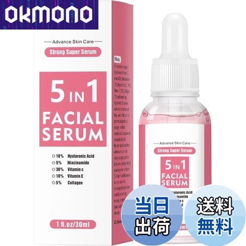 【送料無料】5 In 1 Vitamin C Serum For Face, Firming Skin And Even Skin Tone, with Hyaluronic Acid Serum, Vitamin E & Collagen, Vitamin C, Nicotinamide, Suitable for All Skin 30ML 色:ピンク