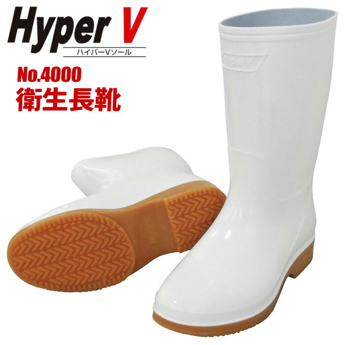 日進ゴム Hyper V #4000 衛生長靴 【22.5〜27.0・28.0・29.0cm】 厨房や食品加工工場に最適な作業安全性と快適性を追求した衛生長靴です。 作業長靴 ゴム長靴 耐油長靴 衛生長靴 rev
