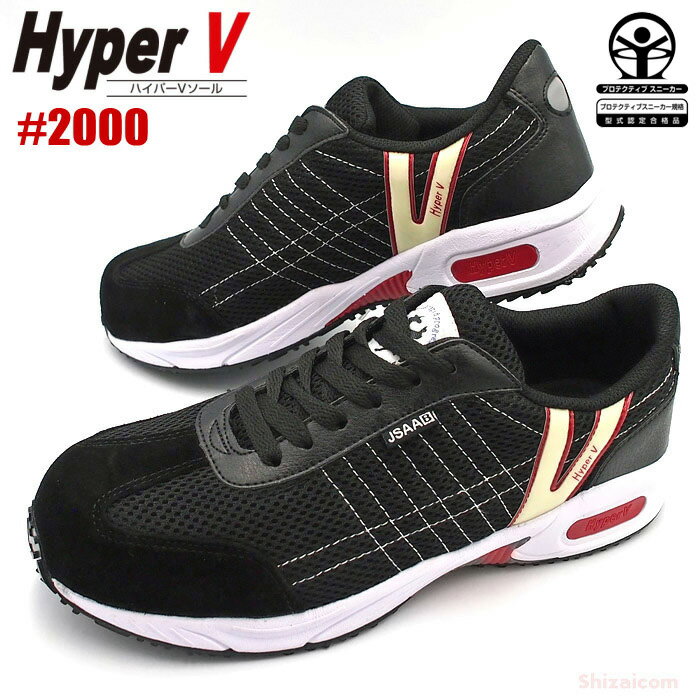 日進ゴム HyperV #2000 【ブラック】【22.5〜27.0・28.0・29.0cm】 優れた耐滑性能を誇る「ハイパーVソール」を搭載したセーフティースニーカーです。 JSAA規格認定 安全スニーカー セーフティーシューズ rev